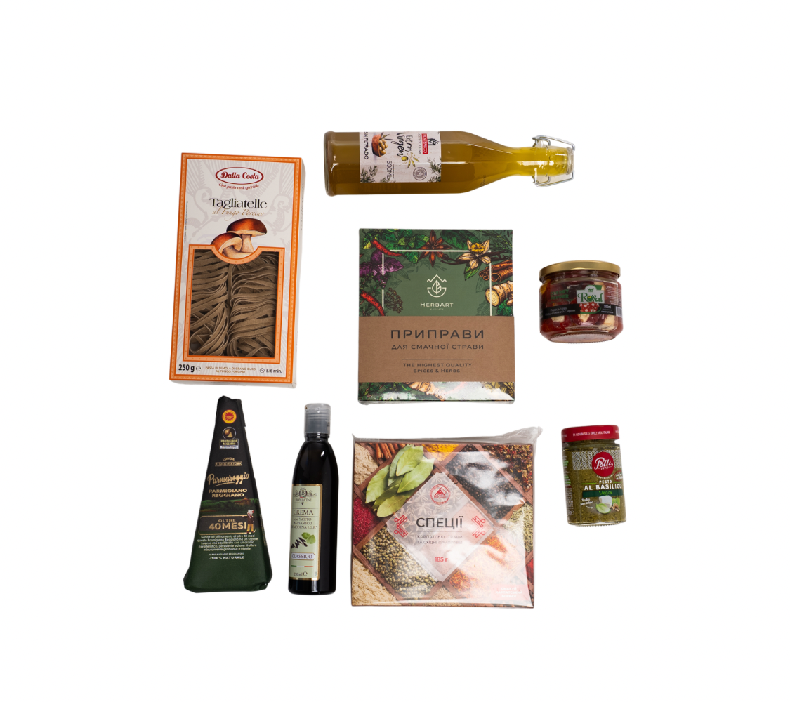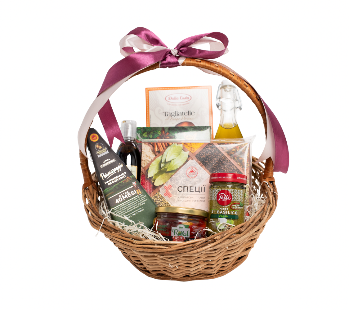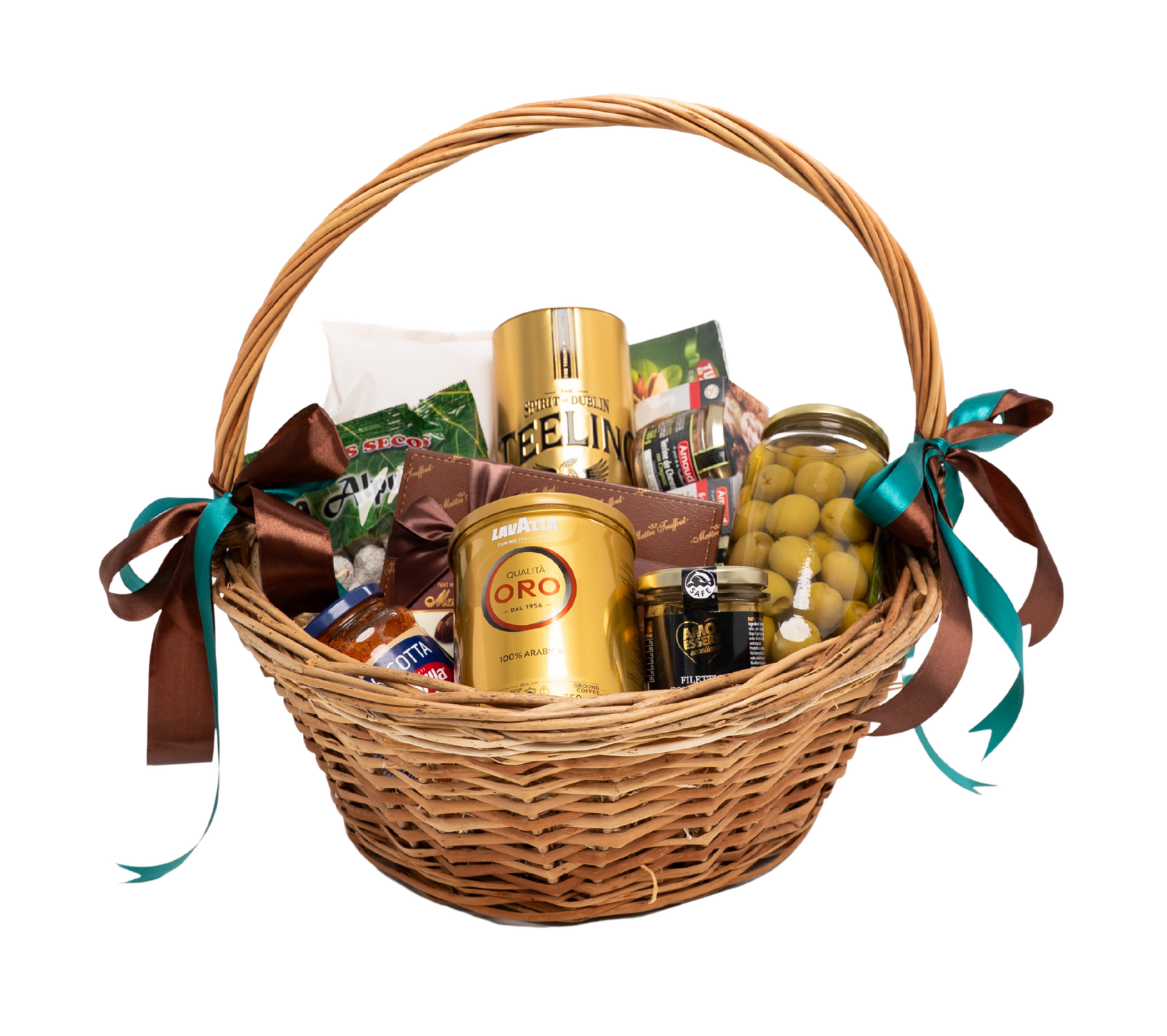 Корзина Інжир сушений Кава Lavazza Qualita Oro мелена Соус Barilla Ricotta Паштет з косулі, кабана та оленя Arnaud Макаронні вироби Gallo зі шпинатом Цукерки Maitre Truffout Belgian Pralines Dark Оливки Bravo гіганте без кісточки Лукум з фісташкою Сир Парміджано Реджано Віскі Ірландія бленд «Teeling Small Batch»