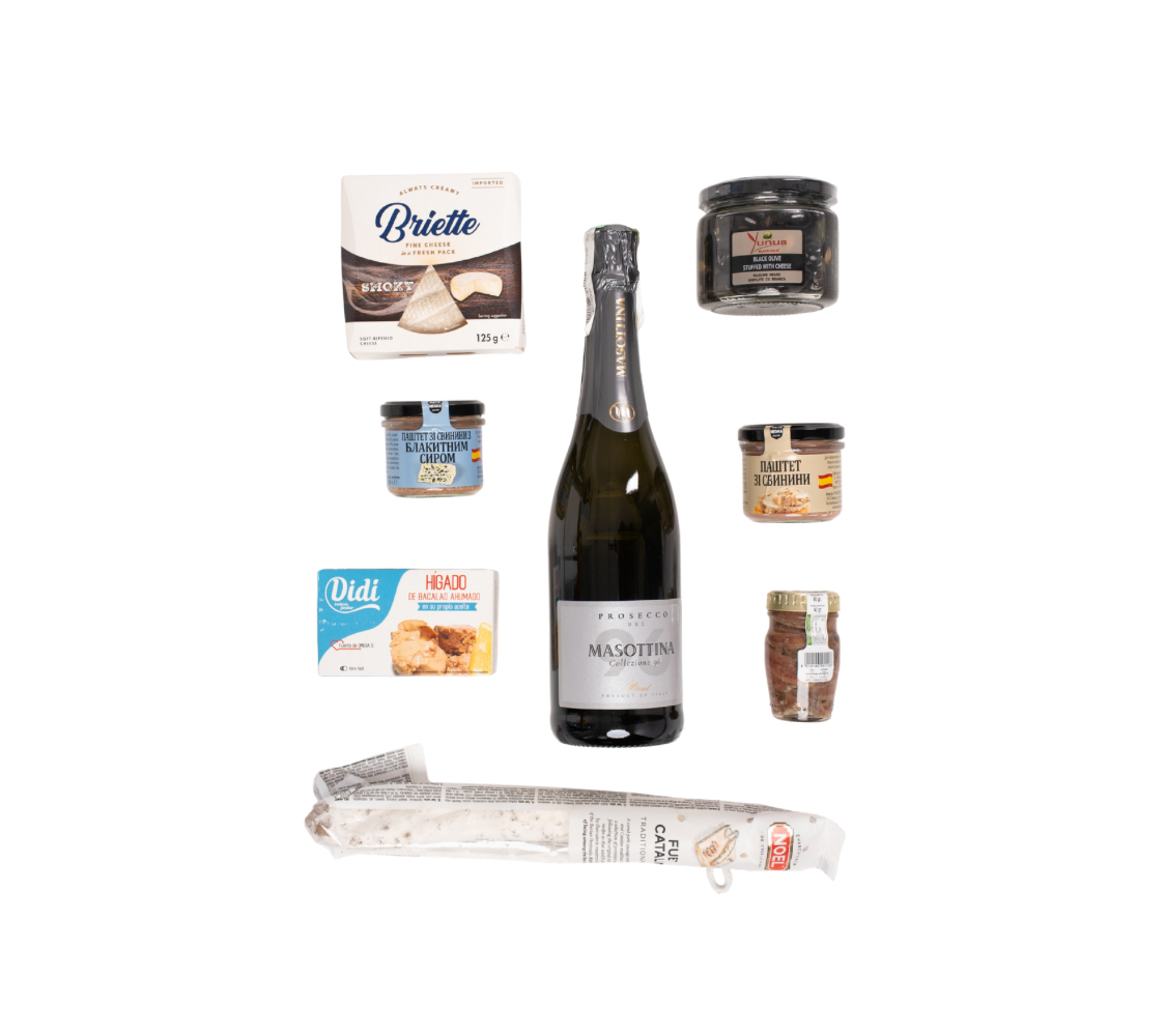 1.Подарункова корзина 2.Подарункове пакування товару 3.Шампанське Cava Jaume Serra Brut Tube бiл. сух. 0,75 л 4.Лукум в асортименті з фудуком, фісташкою та мигдалем 300 г TM Ugurlu 5.Цукерки Maitre Truffout Асорті праліне Бельгійське 100 г 6.Джем Gina апельсиновий 400 г 7.Штолен Quickbury Christ 750 г 8.Олія оливкова Ybarra Extra Vergine з трюфелем 250 м 9.Соус Polli Salsa Pomodoro & parmigiano reggiano 350 г 10.Паштет з косулі з коньяком Arnaud 180 г 11.Оливки Corbi Sosa Зелені цілі в розсолі 700/400г 12. Троянди червоні 19 шт Насолода для серця і смаку, щоб порадувати особливу людину.