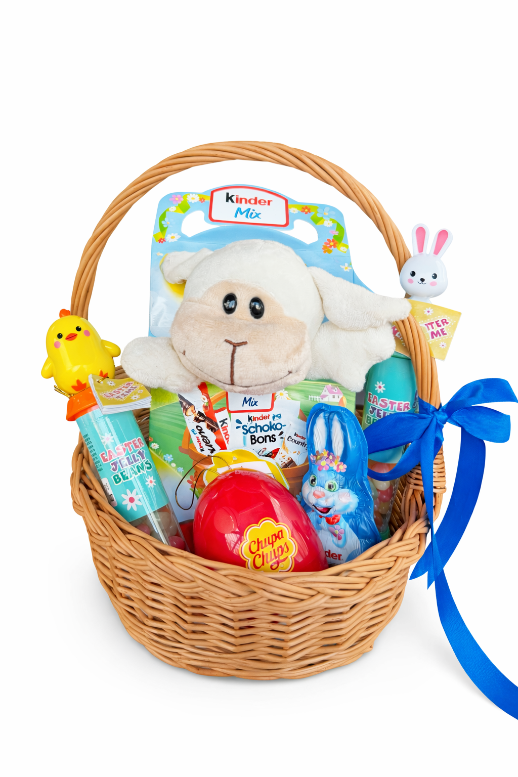 Корзина S Яєчко з цукерками Chupa-Chups 72г Паличка з драже Easter Jelly Beans 50г ×2 Шоколадний зайчик Kinder Easter Rabbit 55г Подарунок з іграшкою Kinder 133г